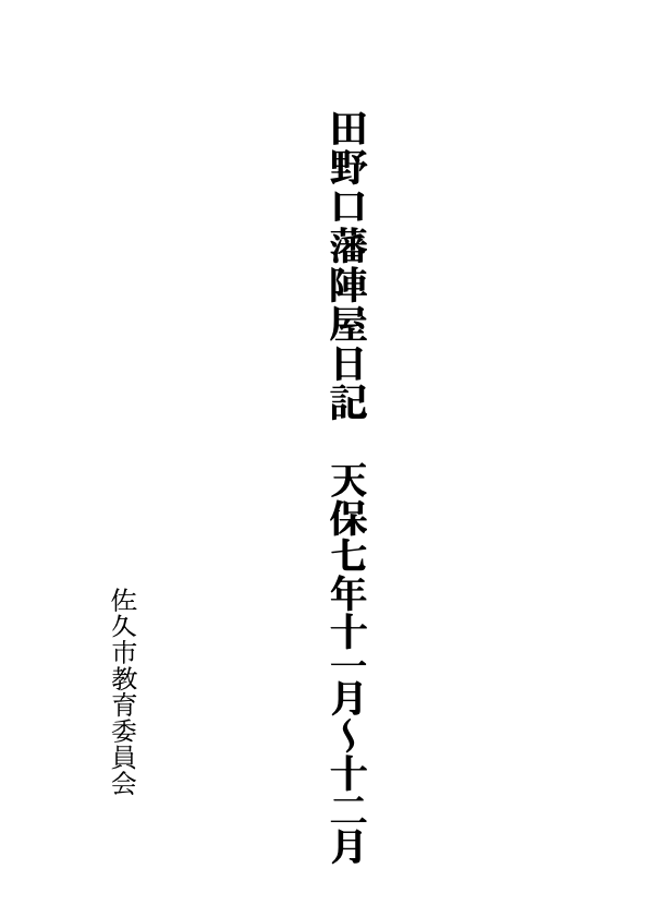 田野口藩陣屋日記 天保七年十一月〜十二月